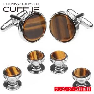 カフスボタン スタッドボタン セット シルバー ライン タイガーアイ ストーン カフス スタッズセット
