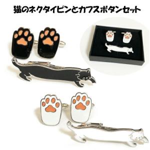 猫セット ネクタイピンとカフスボタンセット黒猫と白猫から選べます。