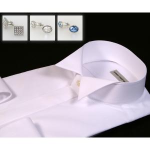 【選べるカフスボタン付】ウイングシャツ メンズ 比翼ウイングカラーシャツ フライフロント スワロフスキー カフリンクス M877 AC01