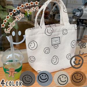 大人カワイイ【送料無料】スマイル コーデュロイ トートバッグ ミニトート キャンバス トート バッグ ランチトート 大容量 ランチバッグ 帆布 エコバッグ 総柄