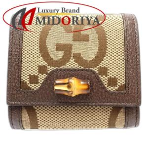 【中古】GUCCI グッチ 二つ折り財布 658635 バンブージャンボGG ダイアナコンパクトウォレット キャンバス ベージュ レディース /181931