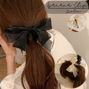 ヘアクリップ バナナクリップ リボン付き 挟むだけ ヘアアレンジ レディース 女性 まとめ髪 髪留め 髪飾り フェミニン 大人っぽい かわいい キュー