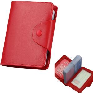 カード入れ 本革 大容量 二つ折り クレカケース 名刺 資格証対応 薄型デザイン メンズ レディース用 赤(レッド)