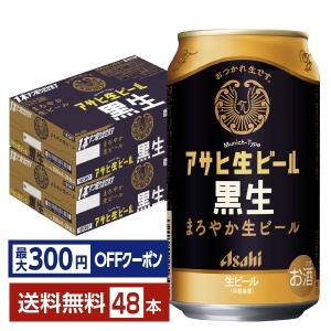 【先着順 最大300円OFFクーポン取得可】ビール アサヒ アサヒ生ビール 黒生 350ml 缶 24本×2ケース(48本) 送料無料