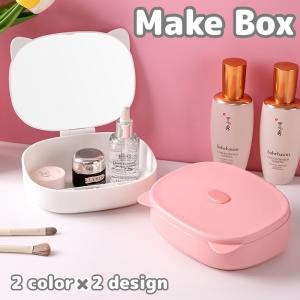 メイクボックス コスメボックスミラー 鏡 仕切り蓋付き ふた付き 化粧品収納 コスメ収納 小物収納 収納ボックス 収納ケース ネコ ねこ 卓上鏡 卓上