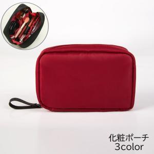 化粧ポーチ コスメポーチ メイクポーチ 小物入れ 広口 内ポケット ファスナー 持ち運び トラベル 旅行 無地 ブラック レッド シンプル おしゃれ