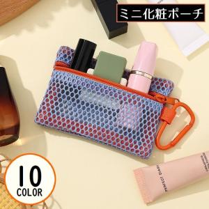 化粧ポーチ メイクポーチ コスメポーチ ミニポーチ リップケース 小物入れ メッシュ カラビナ付き 小さめ 大容量 持ち運び便利