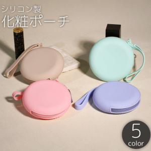 化粧ポーチ メイクポーチ コスメポーチ 小物入れ ストラップ付き シリコン製 防水 ミニ コンパクト 小さめ 円形 円型 サークル ラウンド レディー