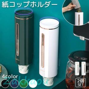 カップディスペンサー 2個セット 使い捨てコップ用 ホルダー 紙コップホルダー カップメイト壁面取り付け 紙カップディスペンサー 収納 両面テープ取り付け