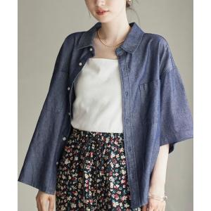 ブラウス シャツ コットンレーヨンデニム半袖シャツ レディース