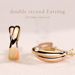 ピアス レディース フープピアス 幅広 細 太 k18 18k 18金 イエローゴールド ピンクゴールド バイカラーピアス コンビカラー ミックスカラー キャッチレス