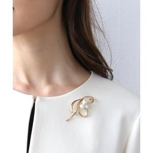 ブローチ リーフラインパールブローチ レディース