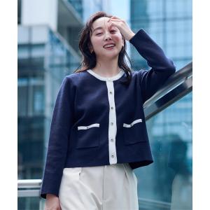 カーディガン ゴールド釦ポケットデザインニットジャケット レディース