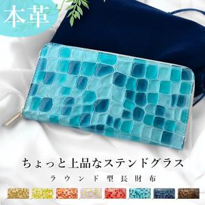 財布 長財布 レディース 本革 ちょっと上品な ステンドグラス サイフ さいふ ウォレット 革 牛革 レザー カード収納 革財布 ラウンド長財布 長サイフ