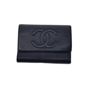 CHANEL◆3ツ折サイフ_レザー_ココマーク_BLK/レザー/BLK/レディース