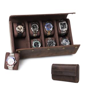 【並行輸入品】 腕時計 アクセサリーケース ウォッチロール クレイジーホース レザー トラベル 8 ウォッチボックス ジッパーウォッチ