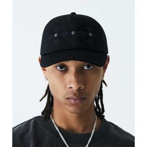 キャップ 帽子 キャップ|Triple Black Cross Leather Patch Mesh Cap|SUPPLIER メンズ レディース