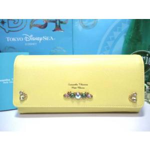 送料無料 サマンサタバサ キラキラ ビジュー付 牛革 かぶせ 長財布 ペール イエロー カード18枚収納 新品 証明書付 ギフト包装無料 開運 金運UP