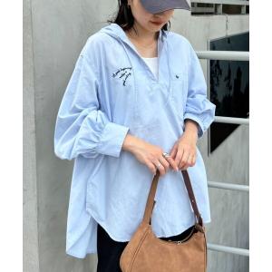 ブラウス シャツ ロゴ刺繍スキッパーフーディーシャツ レディース