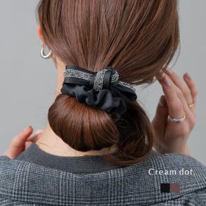 シュシュ リボン サテン調 微光沢 ラインストーン しっかり留まる ヘアゴム ヘアアクセ シック デコラティブ