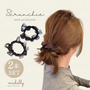 シュシュ ヘアゴム 2個 女性 オーガンジー風 光沢 透け感 ヘアアクセサリー 髪飾り 髪留め ヘアアレンジ まとめ髪 おしゃれ