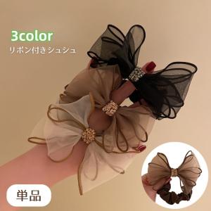 シュシュ リボン 単品 レディース ヘアアクセサリー シフォン オーガンジー ラインストーン キラキラ シースルー 髪飾り 髪留め 可愛い 大人女子
