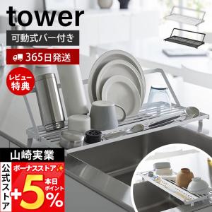 山崎実業 公式 タワー シンク上スリム水切りラック シリコーントレー付き tower トレー シンクに渡せる 可動式バー ドレーナー 10581 10582