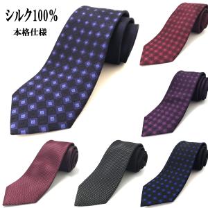 ネクタイ 訳あり シルク 100% 絹 パネル柄 ドット ブルー 赤 ネイビー 紺 パープル グレー ビジネス 結婚式 就活 面接 おしゃれ メール便送料無料