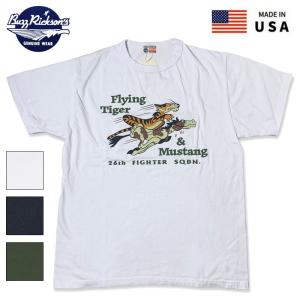 BUZZRICKSON'S (バズリクソンズ) 半袖 フライングタイガー プリント Tシャツ ホワイト ブラック オリーブ 白 黒 緑 BR79511 アメリカ製 米国製