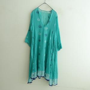 ドーサ DOSA*ジャムダニスキッパーワンピース*2カディコットン刺しゅうドレス楊柳グリーンネイビーホワイト(27-2507-87)【01H52】
