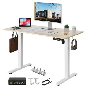 ErGear 電動 昇降デスク 一枚板 スタンディングデスク 幅140cm 無段階高さ調節 4つのメモリー機能 上下自動昇降 収納フック付き パソコン