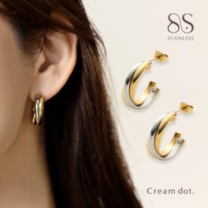 サージカルステンレス ピアス 金属アレルギー つけっぱなし ダブルメタル ぷっくり 艶感 カーブ 軽量 フープ