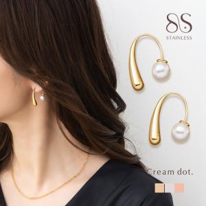 サージカルステンレス ピアス 金属アレルギー つけっぱなし フック パール ドロップ パールキャッチ 2way