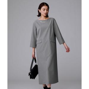 ワンピース 「洗える/ストレッチ性」スーツライク ストライプワンピース