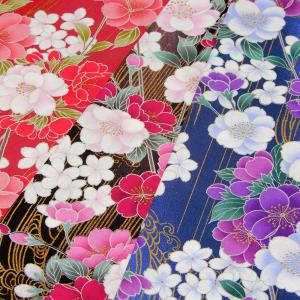 生地 和柄 和花 シーチング 黒 赤 紺 布地 110cm幅 商用利用可 メール便3m迄 爆買