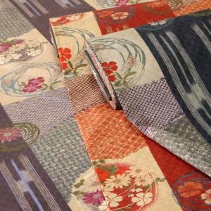 生地 和柄 縞絣大和花文様 レトロ モンブロハチス 綿 布 プリント コットンこばやし 布地 110cm幅 商用利用可 メール便2.5mまで 爆買