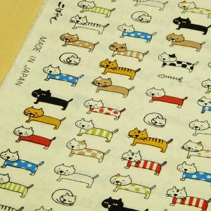 猫柄 生地 ナイロンタフタ 整列ネコ コットンこばやし タスラン エコバック 布 約115cm幅 商用利用可 メール便3mまで 爆買