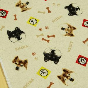生地 犬柄 柴犬ステッカー コットンリネン 綿麻キャンバス 布 コットンこばやし 布地 110cm幅 商用利用可 メール便2mまで 爆買