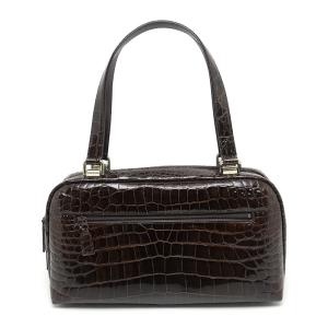 クロコダイルハンドバッグ JRA ブラウン シャイニー カードケース付
