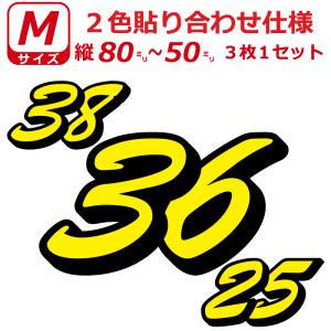ゼッケン 2色仕様 ナンバー 数字 ステッカー B書体 Mサイズ3枚選べる数字とカラーとサイズ