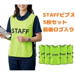 ビブス スタッフ STAFF ゼッケン ベスト 男女兼用 フリーサイズ キッズ 大人 大きめ 目立つ イベント スポーツ 大会運営 運動会 サイドゴム 5枚 1枚