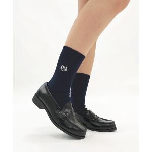 スクールソックス ワンポイント ハイソックス 女子 男子 靴下 20-22cm〜24-26cm (白 紺 黒 学生 通学 ソックス 高校生 中学生 両面刺繍 スクログ)