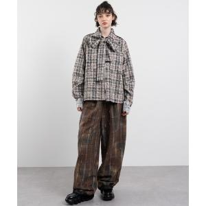 パンツ 「ELOOPS」甘辛ミックス!ダメージ加工レースドッキングチェックパンツ レディース メンズ