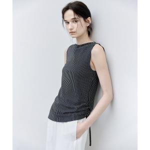 tシャツ 「tageechita」裾絞りでシルエット調整ボートネックストライプノースリーブトップス レディース