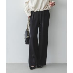 スラックス パンツ 「セットアップ対応」ルナサテンナローフレアタックパンツ レディース