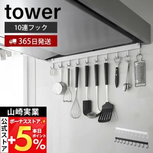 山崎実業 公式 タワー レンジフードフック 10連 tower 10連フック コンロ 奥 横 キッチン 調理器具 浮かせる 引っ掛け収納 1743 1744
