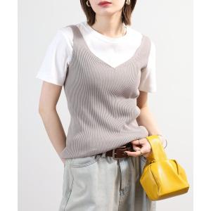 タンクトップ ノースリーブ バイカラーニットタンク レディース