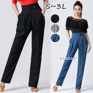 ダンスパンツ タックパンツ 黒 マジックテープ 薄手 軽量 社交ダンス ラテンダンス ストレートパンツ