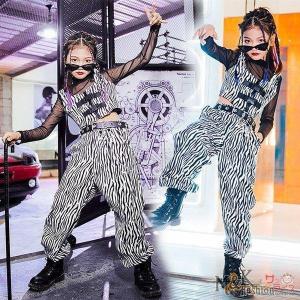 キッズダンス衣装 女の子 ヒップホップ セットアップ ベスト ゼブラ柄 キッズ チアガール HIPHOP 応援団 長袖 ジュニア ステージ衣装 へそ出し 練習着
