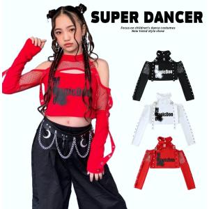 トップス へそ出し服 キッズ ダンス衣装 ガールズ ヒップホップ ファッション 黒 白 オレンジ 赤 青